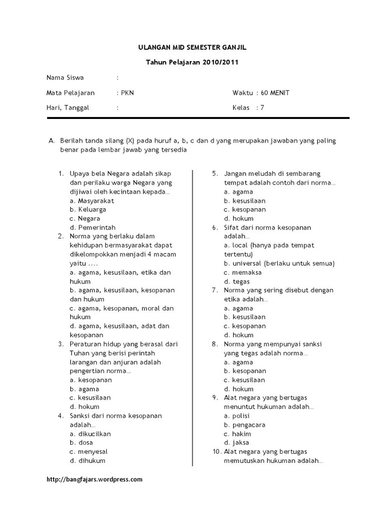 Ktsp dilengkapi kunci jawaban terbaru 2017/2018. Soal uts pkn kelas 7 semester 1 & 2 kurikulum 2013 ? Soal pkn smp kelas 7 uas smt ganjil. Dimulai dari pertanyaan nomor 56, berikut dibawah ini soal pkn k13 kelas 7 semester ganjil dan kunci jawabannya. Berikut ini jawaban dan soal untuk latihan penilaian akhir semester (pas) atau ulangan akhir semester (uas) kelas 7 smp mata pelajaran pkn.